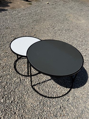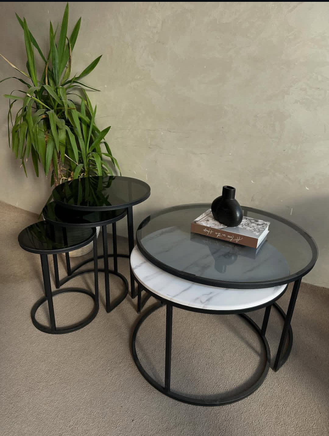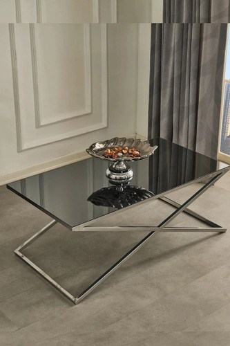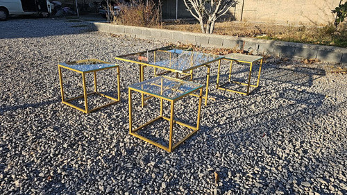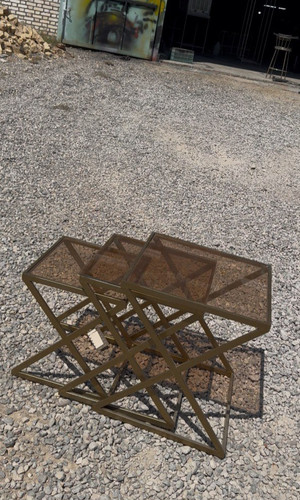 میز جلومبلی با عسلی هاش از جنس فلز با رویه شیشه