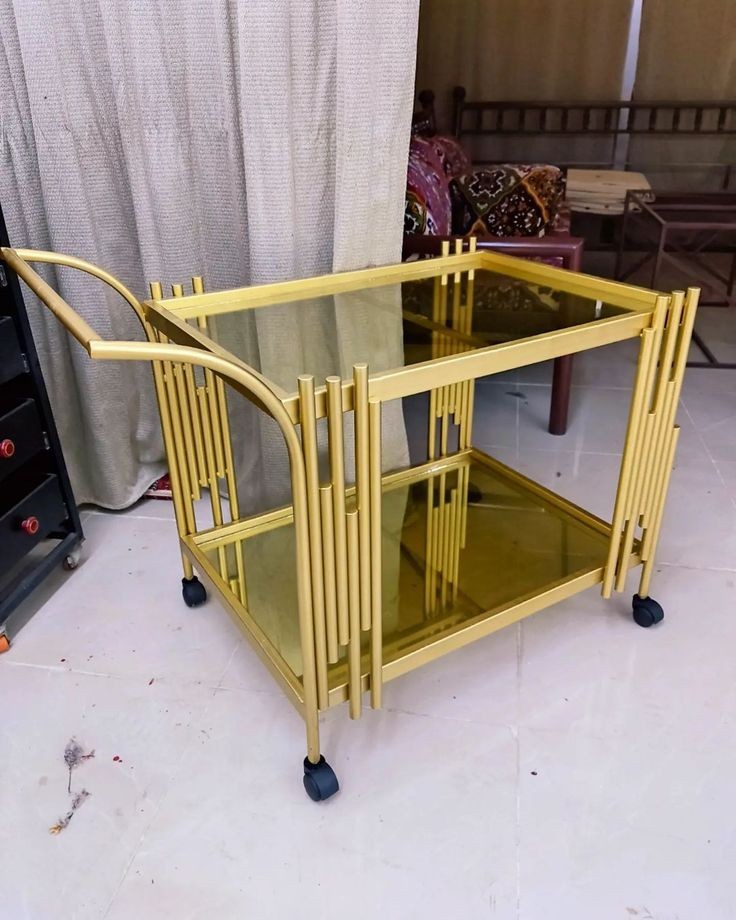 میز کافی بار طلایی با رویه شیشه
