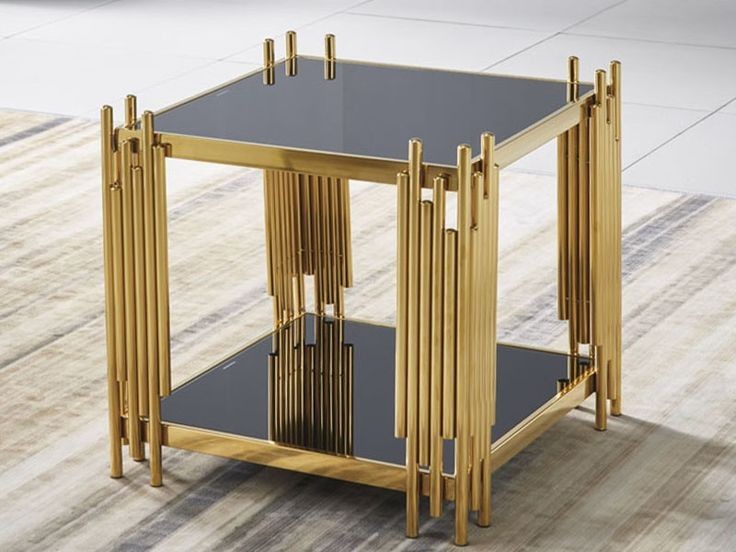 میز عسلی مدرن از جنس فلز با رویه شیشه دارای رنگبندی