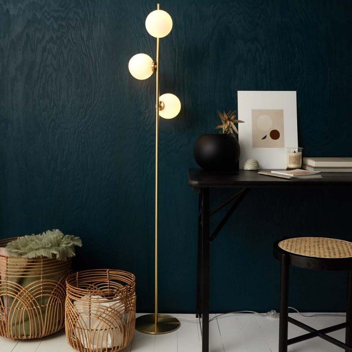 آباژور ایستاده مدرن سه شعله با پایه مشکی و طلایی مات