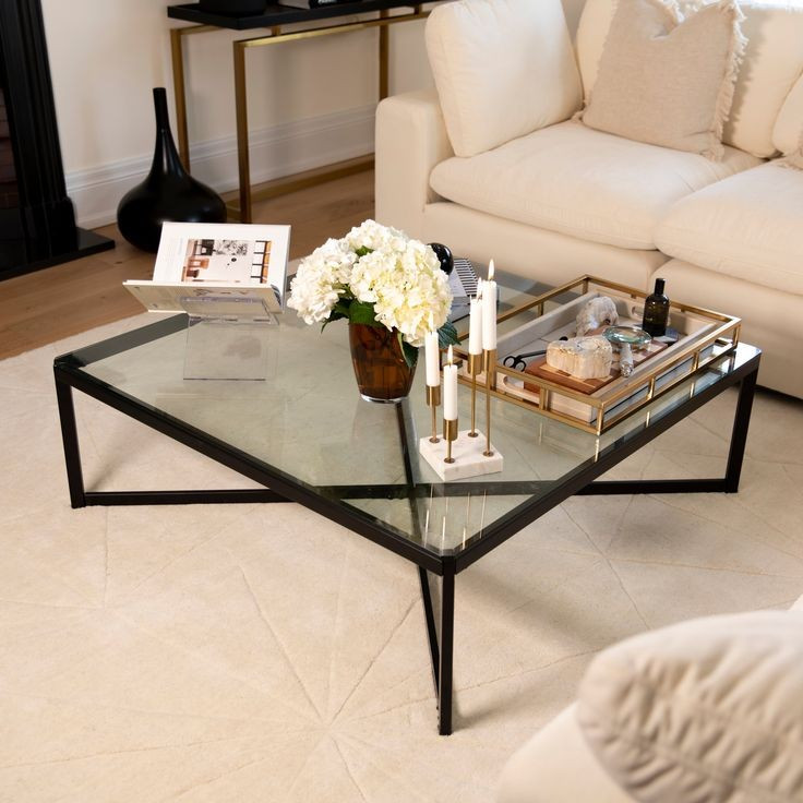 میزجلومبلی مربعی شکل با رویه شیشه