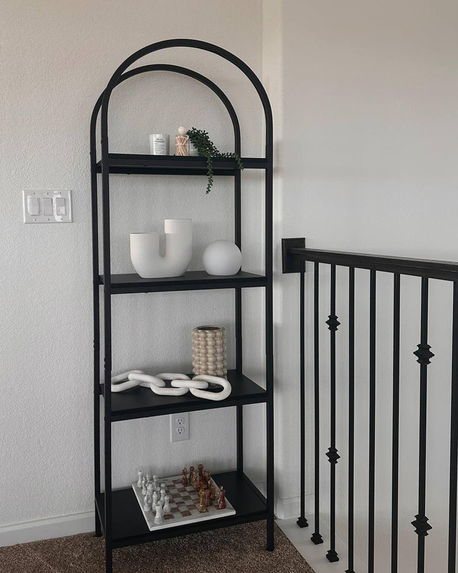 استند دکور گنبدی مشکی با طبقات MDF؛ ترکیبی از زیبایی و استحکام، مناسب چیدمان گلدان و وسایل دکوری در منزل، فروشگاه و فضای کاری.»